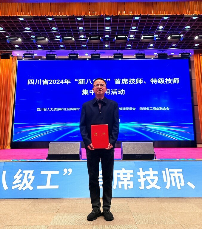 2月21日,2024年度四川省“新八级工”首席技师、特级技师集中聘用仪式在成都举行。yl23455永利官网生产技术部部长常云春,凭借精湛的专业技能和丰富的实践经验,从全省技能人才队伍中脱颖而出,成为达州市属国企首批荣获特级技师称号的技能型人才。